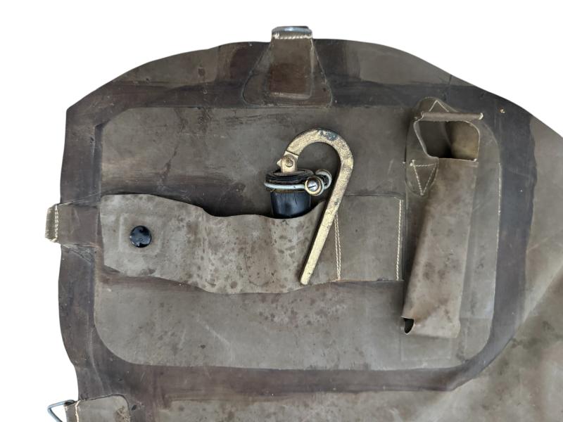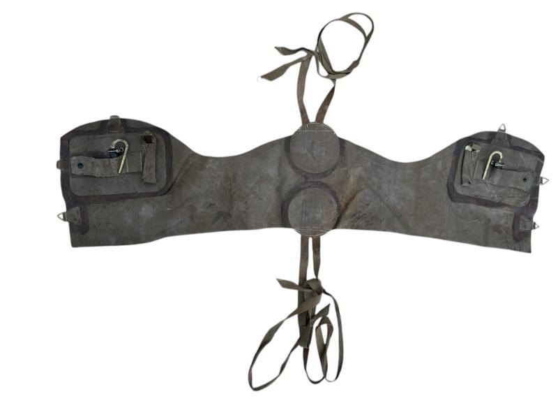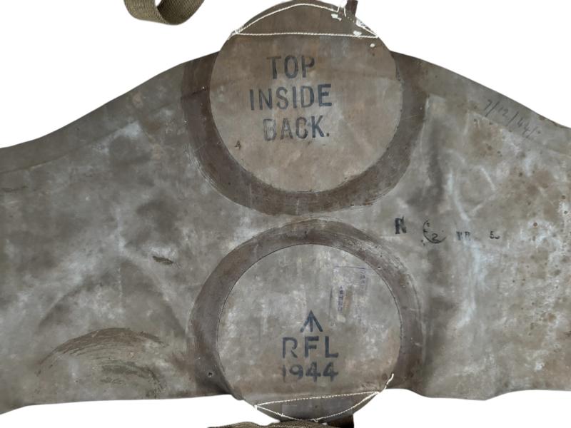 British Airborne Life Preserver often refered to as "Mae West". In unissued condition yet with the obvious ageing. The vest is complete with all straps, hooks and clasps as well as the release valves. The life preserver is clearly 1944 dated and makers marked RFL and marked with the Broad Arrow. These life preservers would have been worn under the X-Type Parachute harnass. Widely used by British Airborne paratroopers during both Normandy and the Battle of Arnhem in 1944. In excellent condition, would be hard to upgrade.