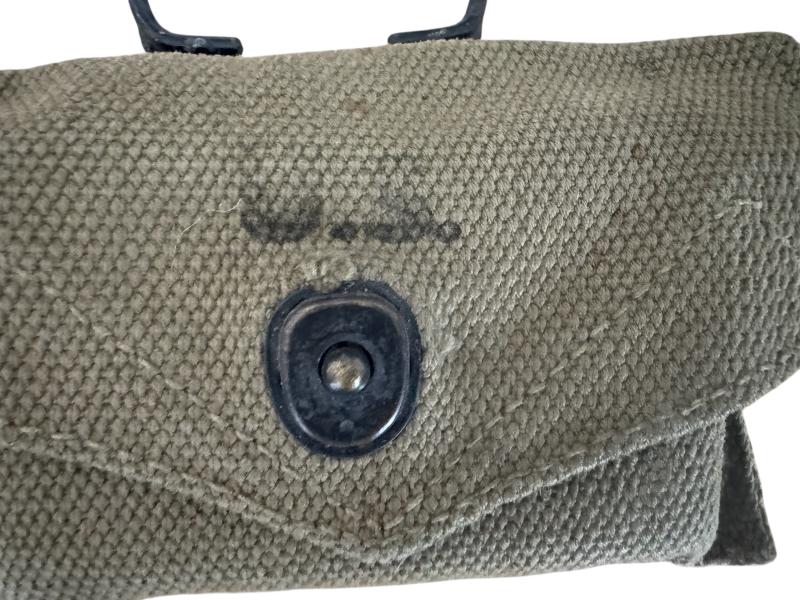 U.S. M1942 First Aid Pouch. Executed in canvas and makers marked B.A.B. CO. U.S. marked on the front and clearly 1942 dated. Fitted with original Carlisle Dressing. In mint Condition.