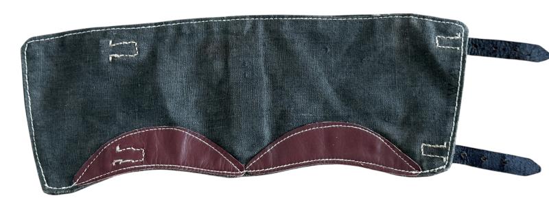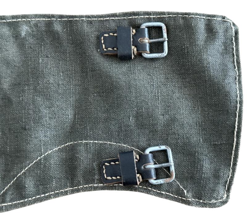 Wehrmacht (Heer/Waffen-SS) matching set of Canvas Gaiters (Gamaschen).Executed in grey-green canvas with black leather straps and brown leather re-inforcement. A makers mark and date are partly visible IMO 1943 dated.