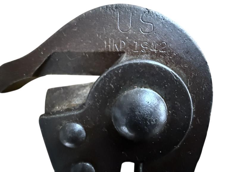U.S. M1938 Wire Cutters and carrier. the wire cutters are clearly U.S. marked and makers marked HKP. Dated 1942. The webbing carrier case is makers marked Felt Novelty MFG and 1942.