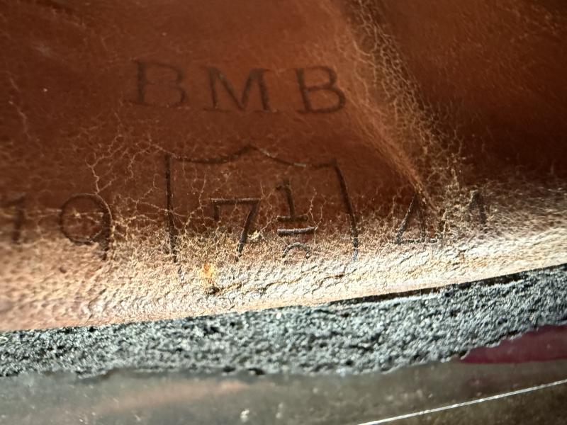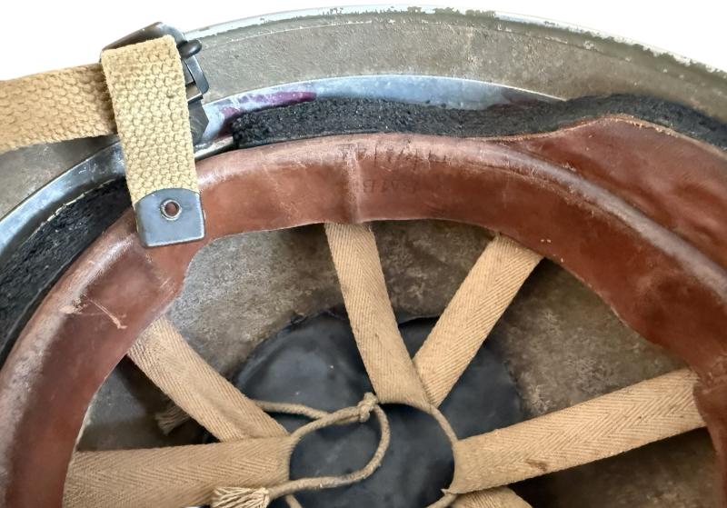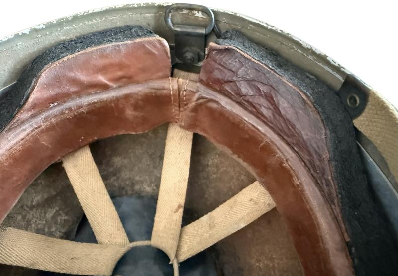 A nice used example of a British (Airborne) MK3 Paratrooper Combat Helmet. Fitted with an equal nice used liner. The liner is makers marked BMB (Briggs Motor Bodies). Dated 1944 and sized 7 1/8. The sorbo is in good condition. Fitted with textbook canvas chinstraps. A very attractive yet nice used British (Airborne) MK3 Paratrooper Combat Helmet with a fantasitc paint finish!