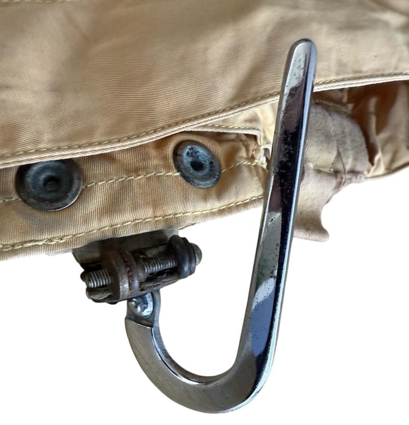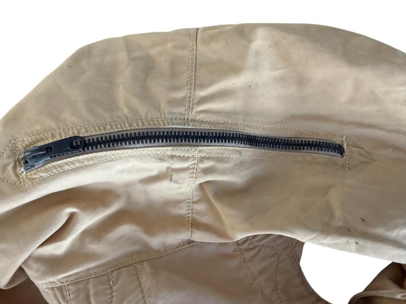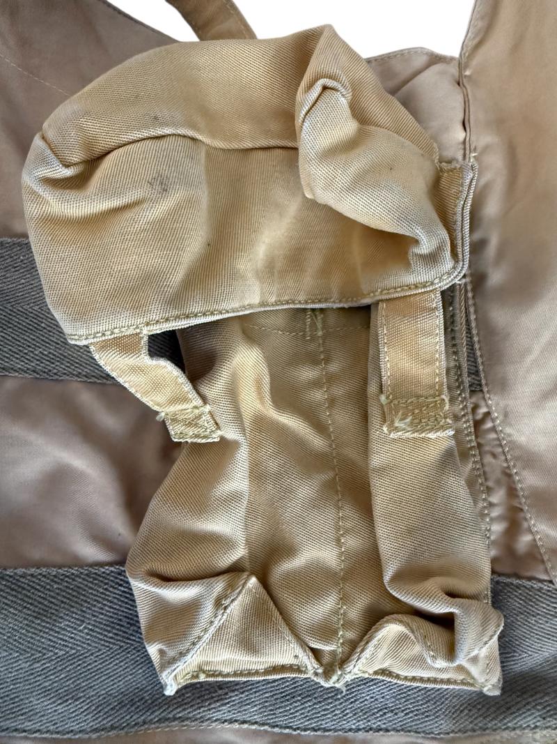 British Royal Air Force 1941 Pattern Mae West. The vest is complete with all web chest and leg ties and full working zip in the collar. Fitted with original lung in order to inflate life jacket. Fitted with a Air Ministry marked 1941 pattern inflation leaver. The Mae West is in overall nice used condition and with a great patina. Increasingly hard to find these days.