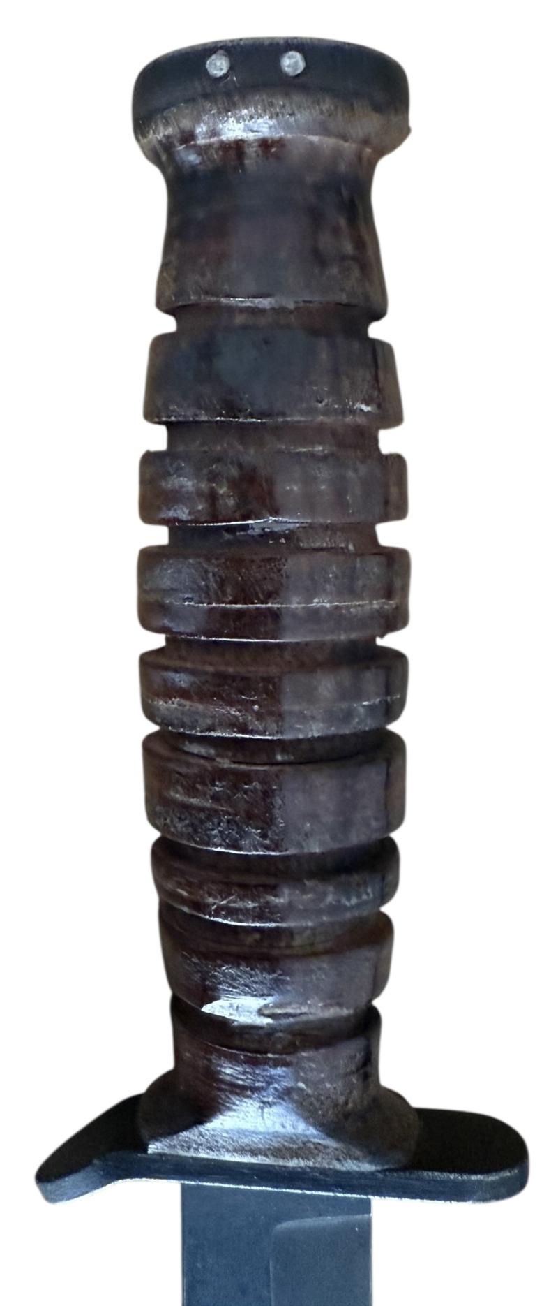 With the knife comes an equal nice i.e. light used M6 leather scabbard. The scabbard is marked U.S. M6, makers marked Milsco Co. and 1943 dated. Increasingly hard to find these days. An attractive U.S. first Model M3 Trench Knife "Camillus" With M6 Leather Scabbard in a hard to upgrade condition.