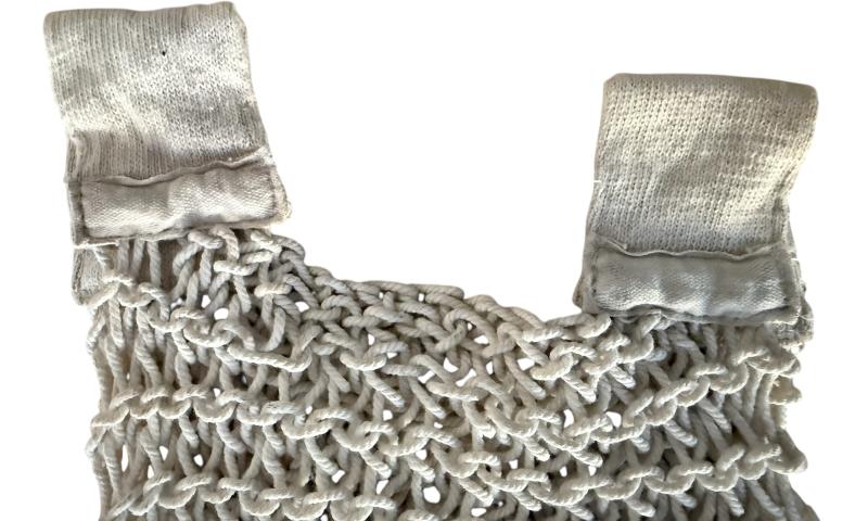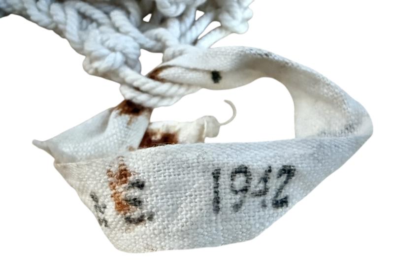 This is an original British cotton string vest dating from the early 1940s, commonly referred to as an “Escape string vest.” The vest could be unraveled and plaited into a rope to aid escape if required. Such garments were issued to paratroopers, pilots, and commando troops, valued for their lightweight construction and dual-purpose utility.
