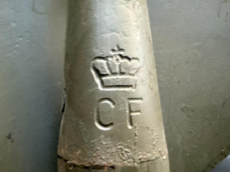 A nice used example of an U.S. M1943 Intrenching Tool. The tool is clearly marked on the blade i.e. "U.S. AMES" and 1945 dated. With the tool and original khaki canvas M1943 intrenching tool cover. The tool cover is makers marked "Tulsa Canvas Products Co." and 1943 dated.