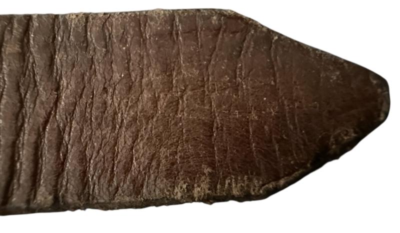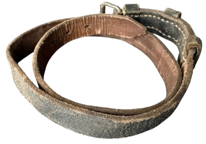 WH (HEER) Assualt Frame Messtin Strap. In nice used condition and executed in black leather. Used to attach the M31 messtin on the assuat frame. The strap is in overall nice used condition.