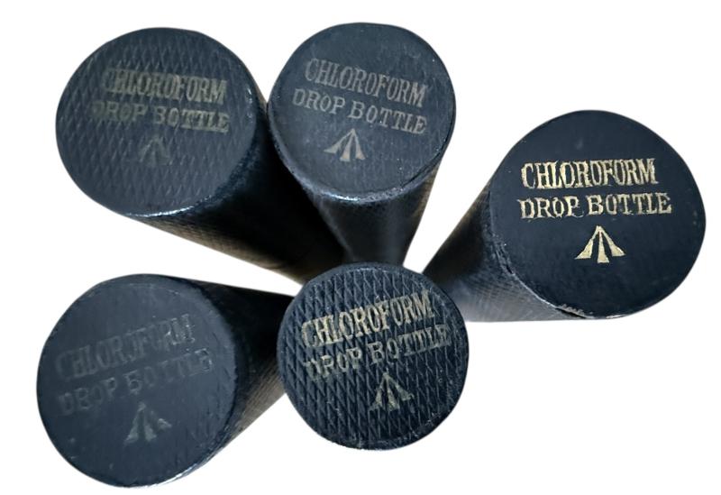 This original British Army chloroform bottle comes complete with its original case, with both items clearly stamped with the Broad Arrow. These bottles would have been part of medical field equipment used by military surgeons and medics. case is purpose‑made to protect the bottle during transport and field use.