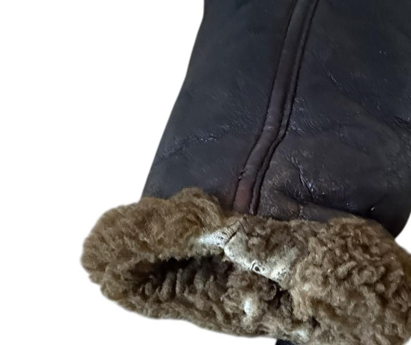 Executed in brown leather and sheepskin lining. The leather has some repairs however is in very smooth and excellent condition retaining a great patina!