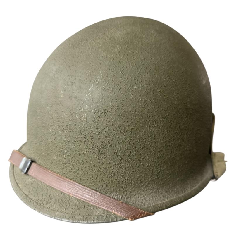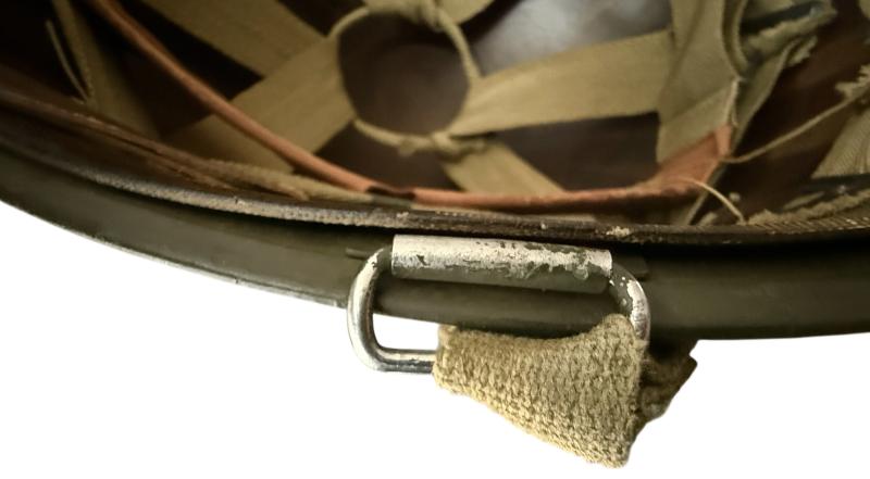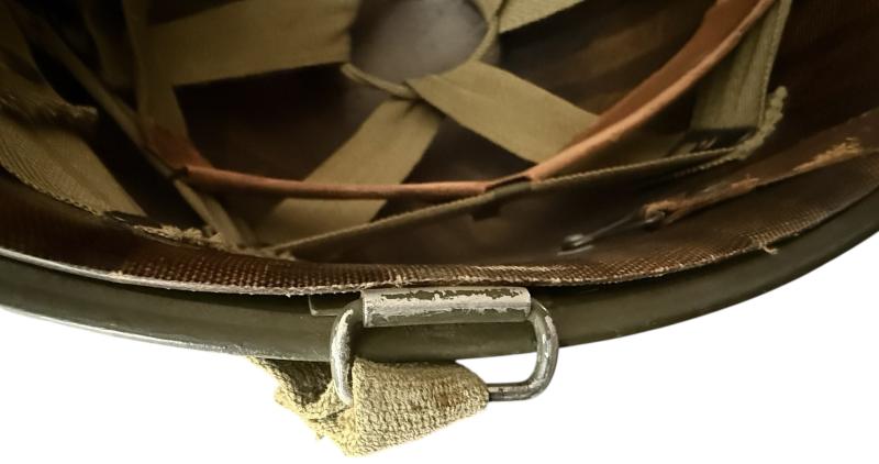 The helmet comes with M1 liner in equal good condition. Compromising a Firestone makers mark. A highly attractive U.S. M1 Swifle Bale Helmet And Firestone Liner that would be hard to upgrade.