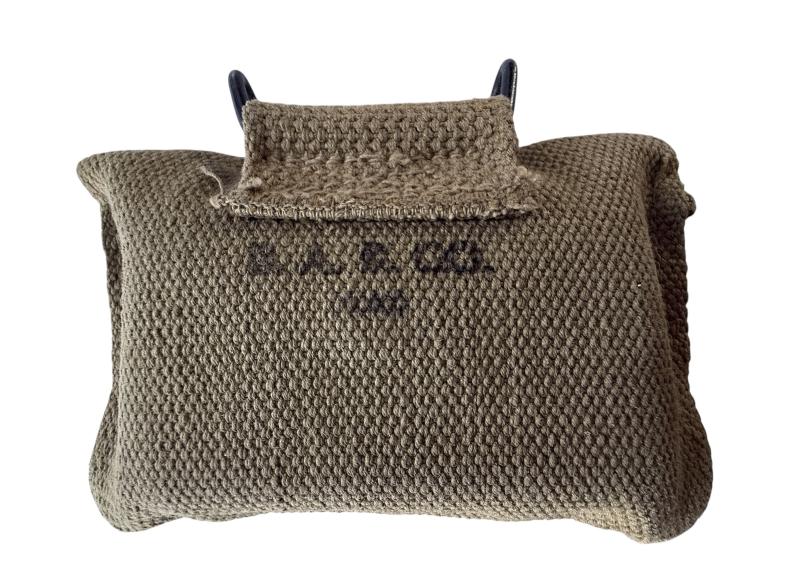 U.S. M1942 First Aid Pouch. Executed in canvas and makers marked B.A.B. CO. U.S. marked on the front. The date is hard to read yet imo 1942. Fitted with original Carlisle Dressing. In overall nice used condition.