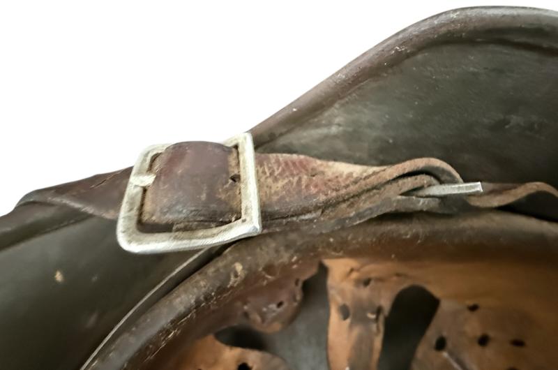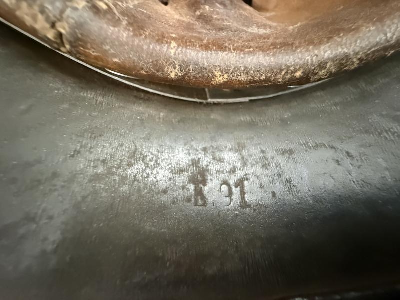 WH (Heer) M35 Double Decal camouflaged combat helmet (Stahlhelm M35). The interior of the helmet is an early M31 leather liner with all eight fingers intact and the original liner cord is present as well. The shell is marked with maker and size 'NS64': production by the company Vereinigte Deutsche Nikelwerke, Schwerte and sized 64. The reverse interior neck guard apron has a stamped serial number 'E91'.The helmet is complete with its original chinstrap, the early chinstrap is having a aluminum buckles. The helmet showing a nice rough 'sand' camouflage overpaint applied over textbook applegreen paint. The HEER decal is still present and clearly visible. A highly attractive and nice used WH (Heer) M35 Double Decal Camouflaged Helmet.