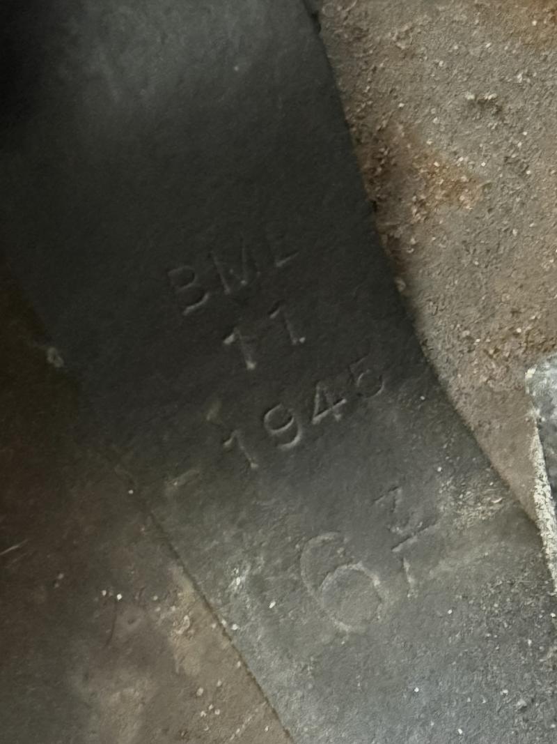 Nice used example of a rare British MK IV ‘Turtle’ Combat Helmet. Fitted with orginal liner makers marked BMB (Briggs Motor Bodies) and 1945 dated. The size appears a size 6 3/4. The liner is attached with a "Lift-the-Dot" press stud, textbook for the MK IV The chin strap is the one piece elastic late war pattern. A harder to find pattern ‘Turtle’ helmet with a great patina!
