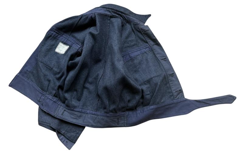 A nice i.e. light used British Royal Air Force Battle Dress uniform consisting out of a Battle Dress Blouse and trousers. Executed in the distinct RAF blue wool. The blouse is mounted with RAF Sergeant Stripes, wing and ribbons for the Distinguished Flying Cross and Distinguished Flying Medal as well as Royal Air Force shoulder patches. This is a textbook example of a non-commissioned pilot. Due to severe pilot shortages, they were highly trained, wore three stripes Sergeant stripes, and mounted with the coveted white embroidered Pilot’s Wing. Fitted with original label, measuring a size 16 and 1944 dated. The blouse is makers marked Templeton & Sons. The trousers are in equal good and light used condition. Also fitted with original label, and size 8. Dated 1944 and makers marked James Smith & Co. (Derby) Ltd. A highly attractive and interesting British Royal Air some minor moth 2x iholes in the jacket and trousers Force Battle Dress uniform that would be hard to upgrade.