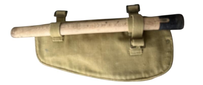 British 1937 pattern entrenching tool and cover. The cover is in unissued condition. Dated 1944 and makers marked W&G Ltd. The tool is imo in nice used conditon, with no visible date and what appears to be makers marked "Berks". An overall nice used British 1937 Patten Entrenching Tool & Cover.