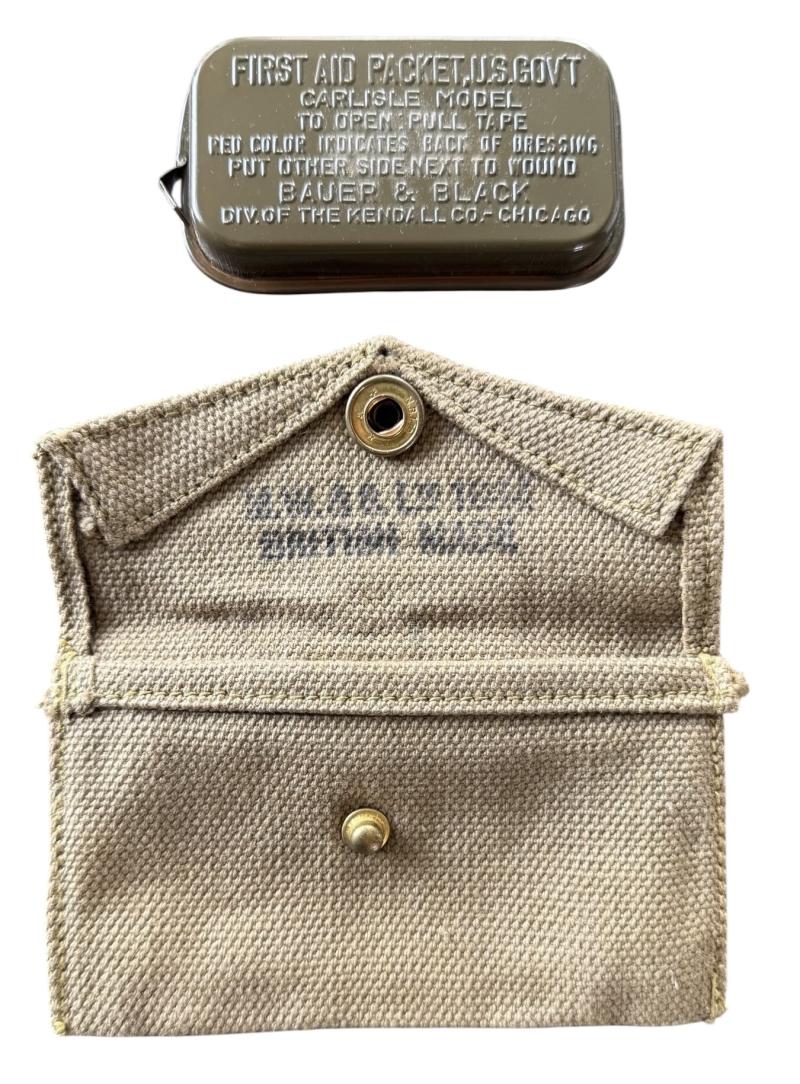 British Made example of an U.S. M1942 First Aid Packet. Makers marked M.W.&S. Ltd and 1944 dated. Increasingly hard to find these days and cannot be upgraded.