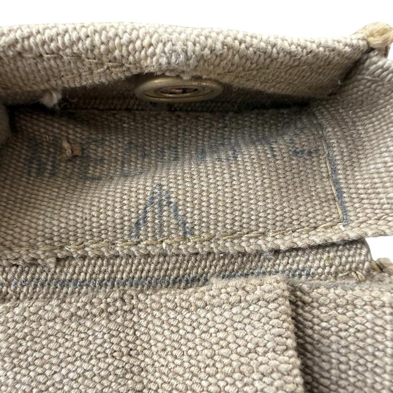 British 1937 Pattern Pistol Holster and Ammuntion Pouch. In nice yet light used condition. The webbing holster is makers marked M.W.&S. Ltd and 1942 dated.The ammunition pouch is dated 1942 and makers marked MeCo. The brace adjuster is marked yet not cleary visible. A nice used set.