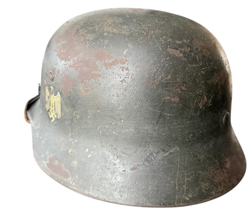 WH (HEER) M35 Single Decal Combat Helmet in nice used condition yet with a nice patina.