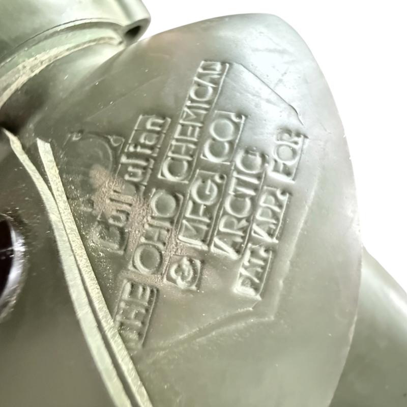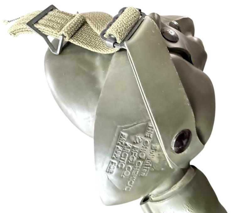 United States Army Air Force A-14 oxygen mask. This pattern of oxygen mask was introduced in 1943 and became the standard issue for fighter pilots and bomber crews until the end of the war. Makers markedOhio Chemical & Manufacturing company in August 1944. A nice i.e. light used example of an wartime dated USAAF A-14 Oxygen Mask.