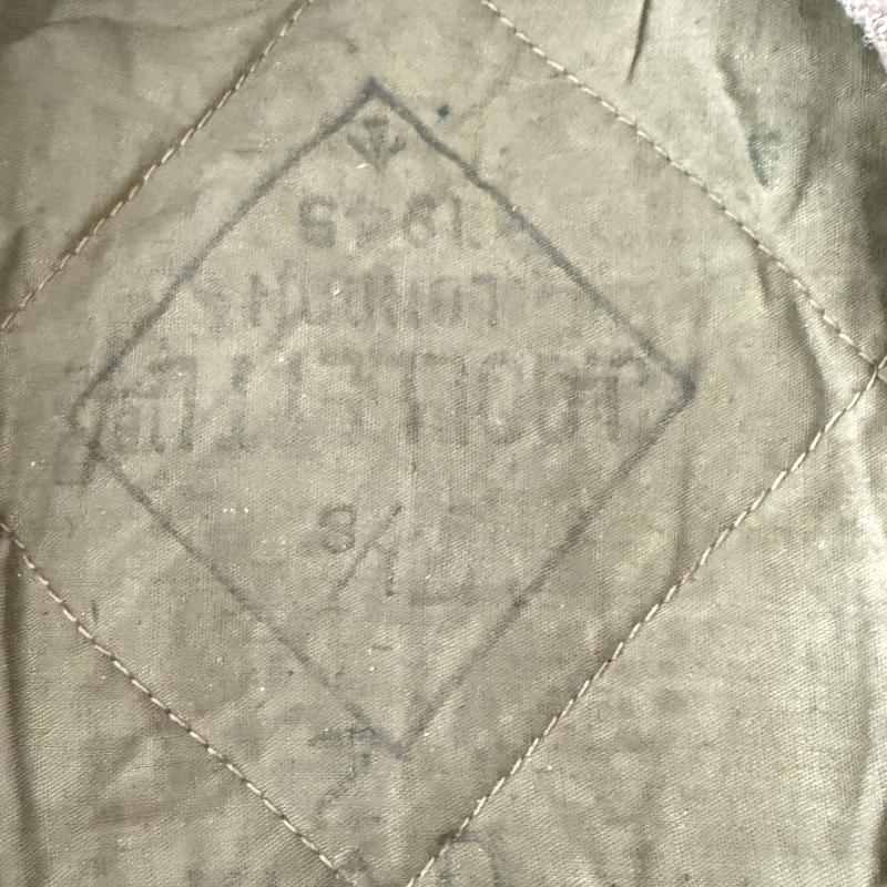 British Khaki General Service Beret, clearly marked by the maker J. Collet Ltd., London and dated 1945. It carries the War Department acceptance stamp, lettercode "Z" indicating 1945 being the year off issue. Sized 7 1/8. The beret remains in attractive yet used condition. A nice used example with appealing patina.
