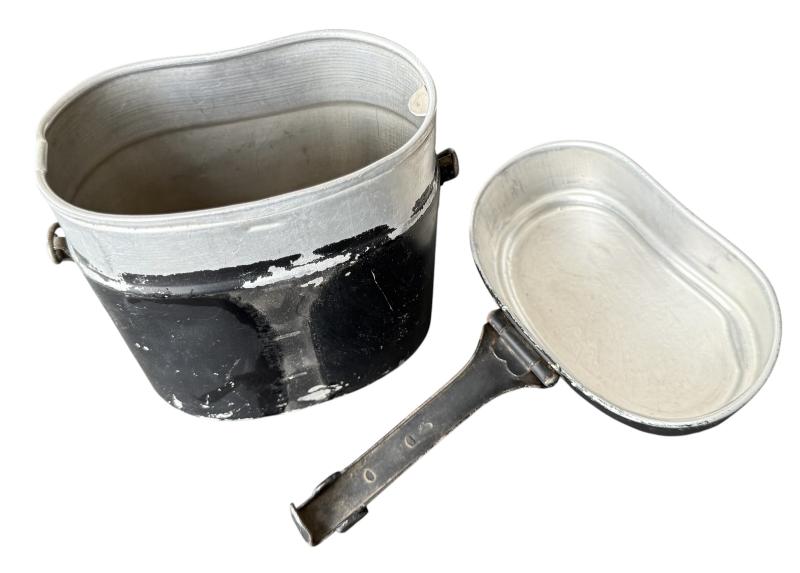 A clear used and unmarked example of a Wehrmacht Mess Kit M31 (Kochgeschirr 31). The 'Kochgeschirr 31' was introduced on 23 March 1931.