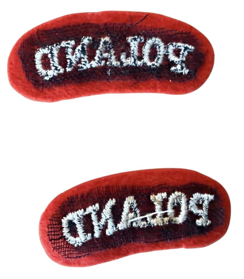 A nice used pair off Poland Embroided Shoulder Titles. These Titles are used by all Polish forces including Airborne troops. Textbook k examples. Cannot be upgraded.