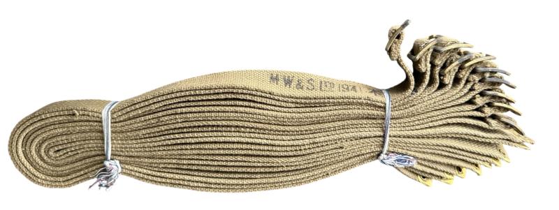 Original bundle of 10 British 1937 Pattern Webbing Utility Straps. 1941 dated and marked with the Broad Arrow. Makers marked M.W.&S. Ltd. In unissued i.e. mint condition.