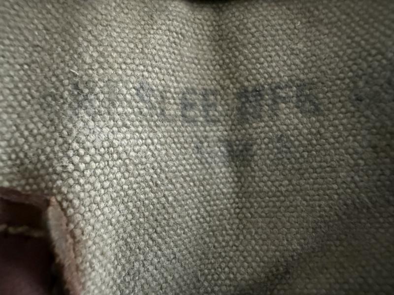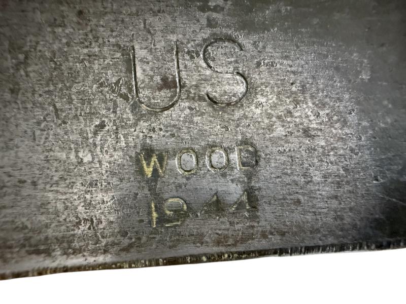 A nice used example of an U.S. M1943 Intrenching Tool. the tool is clearly marked on the blade i.e. "U.S. Wood" and 1944 dated. With the tool and original khaki canvas M1943 intrenching tool cover. The cover has a minor repair. The makers mark and date are partly visible. Clearly U.S. marked on the front. Can be upgraded.
