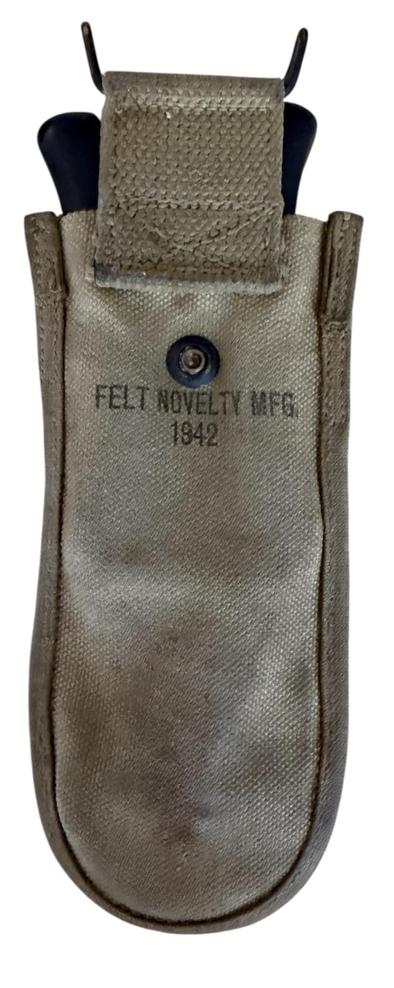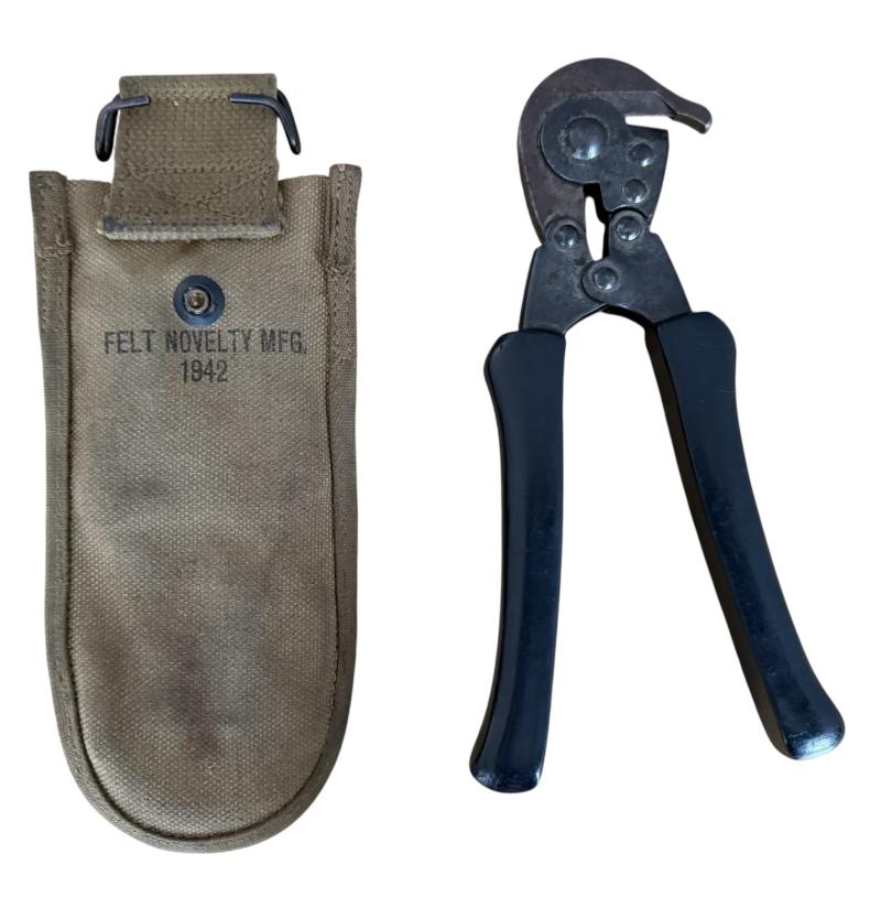 U.S. M1938 Wire Cutters and carrier. the wire cutters are clearly U.S. marked and makers marked HKP. Dated 1942. The webbing carrier case is makers marked Felt Novelty MFG and 1942.