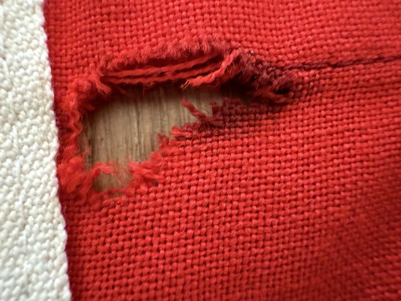 German 'Reichskriegsflagge' The national war flag was flown on all Kriegsmarine warships, Luftwaffe airfields and all buildings from the Wehrmacht and is complete with its original cord with loop. The flag is sized 100x170cms The flag is nicely maker marked Pluschweberei Grefrath