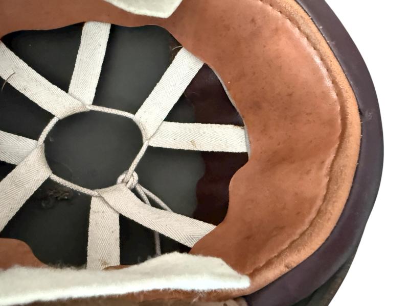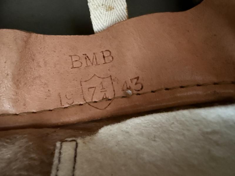 British Dispatch Riders i.e. Motorcyclist Helmet. In light used condition. Compromising a large size 7 1/4 and dated 1943. clearly makers marked BMB (Briggs Motor Bodies Limited'). Hard to find in such large size.