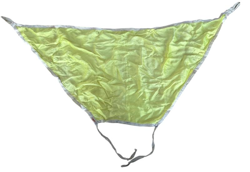 Yellow recognition scarf used by both British and American Airborne troops. These scarves were used to make panels and signal to friendly aircraft for instance for re-supply. These type of scarves are known to have been widely used in Operation Market Garden in 1944. In nice used condition with some age and minor wear. Increasingly hard to find especially in such condition!