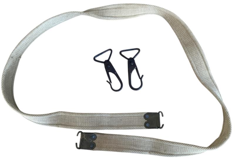 A nice used example of a British carrying sling for the Bren Gun. Executed in webbing canvas and fitted with two larger snap hooks. The sling is not visible makers marked or dated.
