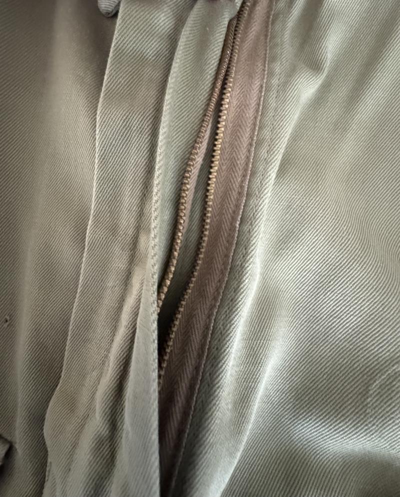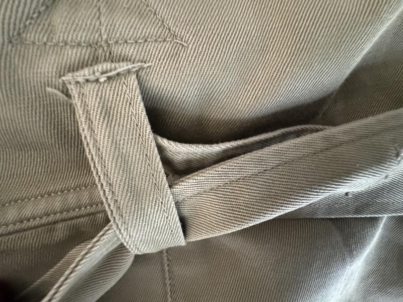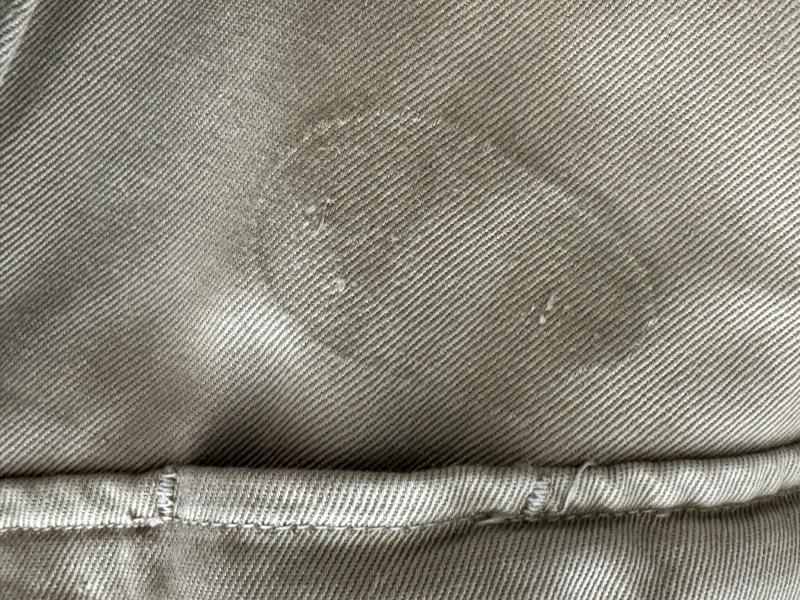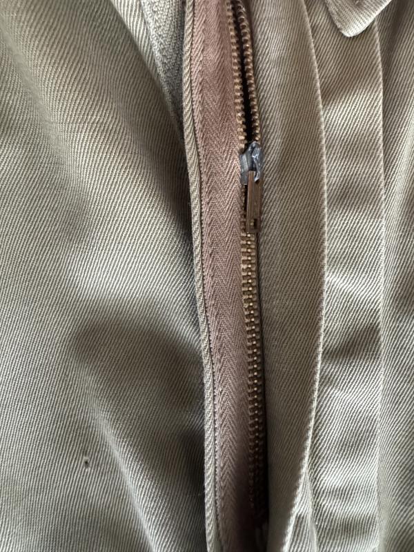 The M1942 jacket has some clear trace of wear and is fitted with an original yet washed out label I would estimate a ./36R / 38R The original "Prentige" zip,is in full working order(one of the knive pocket Zips is brokenThe and the original often displaced waist belt is present. All press studs are in full working order. The trousers are marked with a laundry number V4393 in the lining and equally have some trace of wear and age. The original label is present but mostly washed out. There appear to visible markings in either the jacket or the trousers yet both compromise a decent mannequin size. With the trousers measure around 40cm in waist and 110cm in lenght. A textbook U.S. (Airborne) M1942 Jump Jacket & Trousers with great patina.