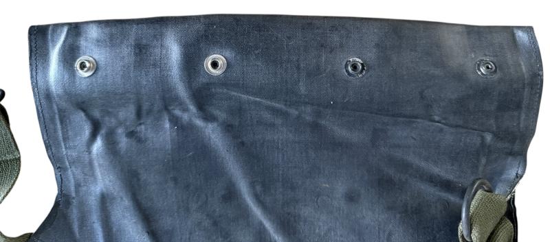 U.S. M7 Army Assault Gas Mask Bag. Waterproof rubberized gas mask bag. Issued to assualt troops during the D-Day landings in June 1944. Marked 'US Army Assault Gas Mask U' on the front of the bag. Increasingly hard to find U.S. M7 Army Assault Gas Mask Bag that can be upgraded.