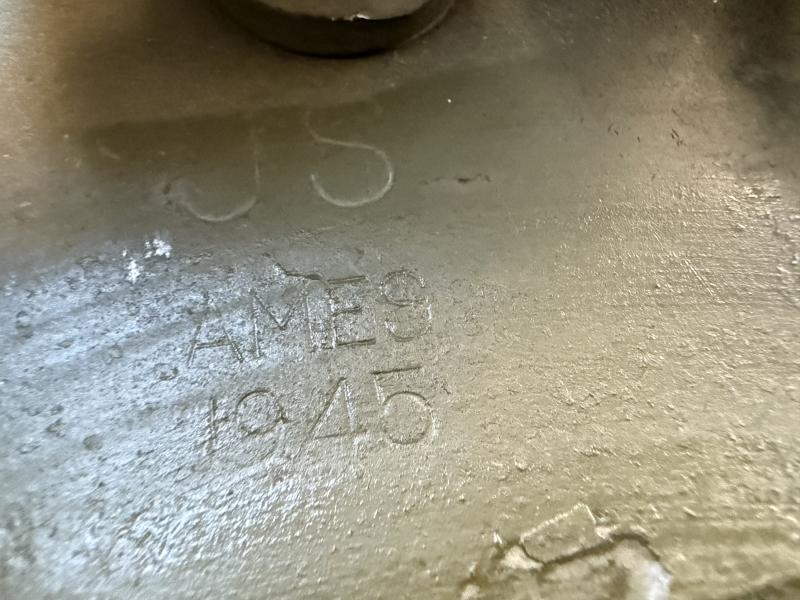 A nice used example of an U.S. M1943 Intrenching Tool. The tool is clearly marked on the blade i.e. "U.S. AMES" and 1945 dated. With the tool and original khaki canvas M1943 intrenching tool cover. The tool cover is makers marked "Tulsa Canvas Products Co." and 1943 dated.