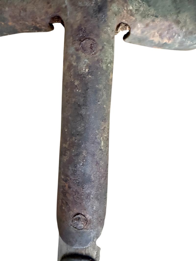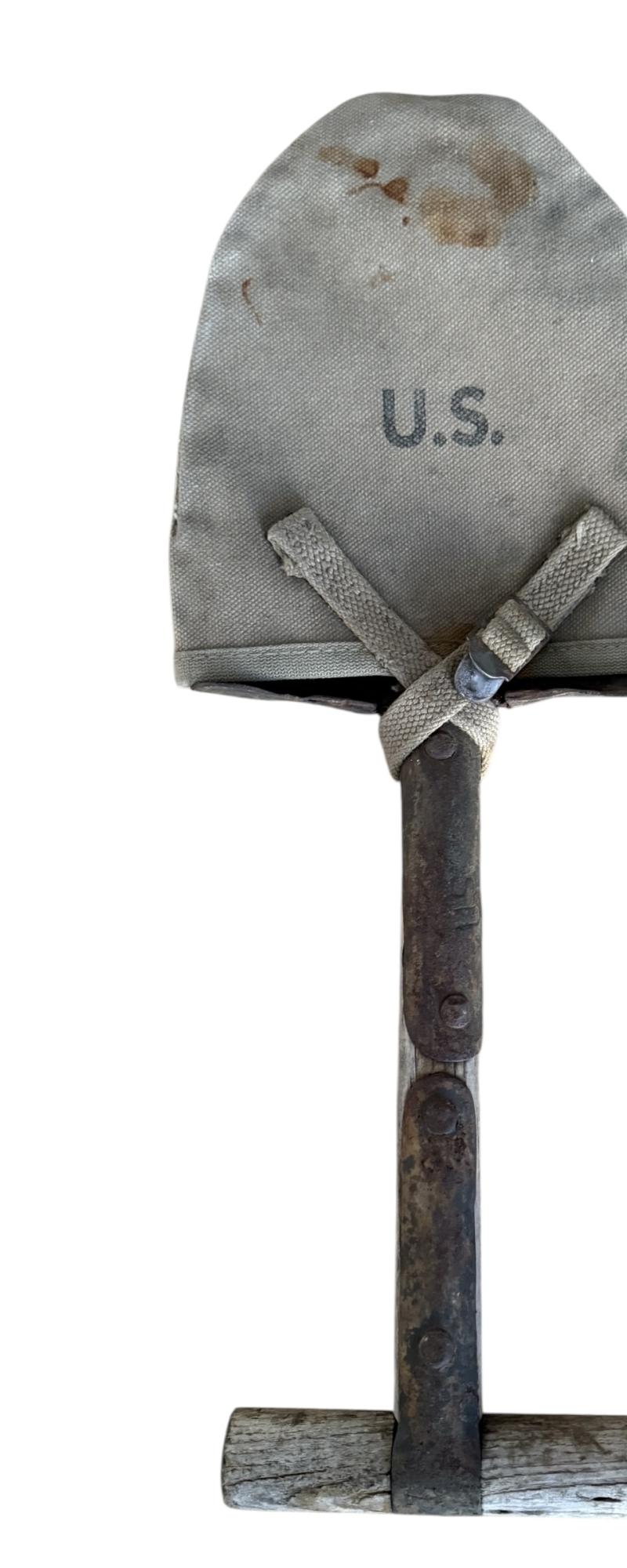 U.S. M1910 T-Shovel. Compromising a wartime modified i.e. shortened example. These shortened models were issued to U.S. Paratroopers such as the 82nd Airborne Division. Used in the European theatre of operation during operations such as D-Day. The shovel has been period modified and is in clear nice used condition. U.S. marked on the guard. Fitted with original, and equal nice used tool cover. U.S. marked on the front, and makers marked B.A.B. and 1942 dated on the rear. A nice used U.S. (Airborne) M-1910 Shortened T-Shovel & Cover. A rare piece of U.S. Airborne equipment with a stunning patina.