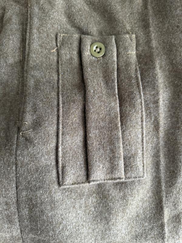 British 1940 Pattern Battle Dress Trousers. In light used and IMO near mint condition. The trousers are clearly marked size 11. Stamped with the War Department acceptance stamp and lettercode E indicates 1946 being the year of issue. However the trousers are lined with dark green fabric, and executed with six button holes this indicates a textbook 1944 produced example of a pair of 1940 Pattern Battle Dress Trousers. Would be very hard to upgrade.