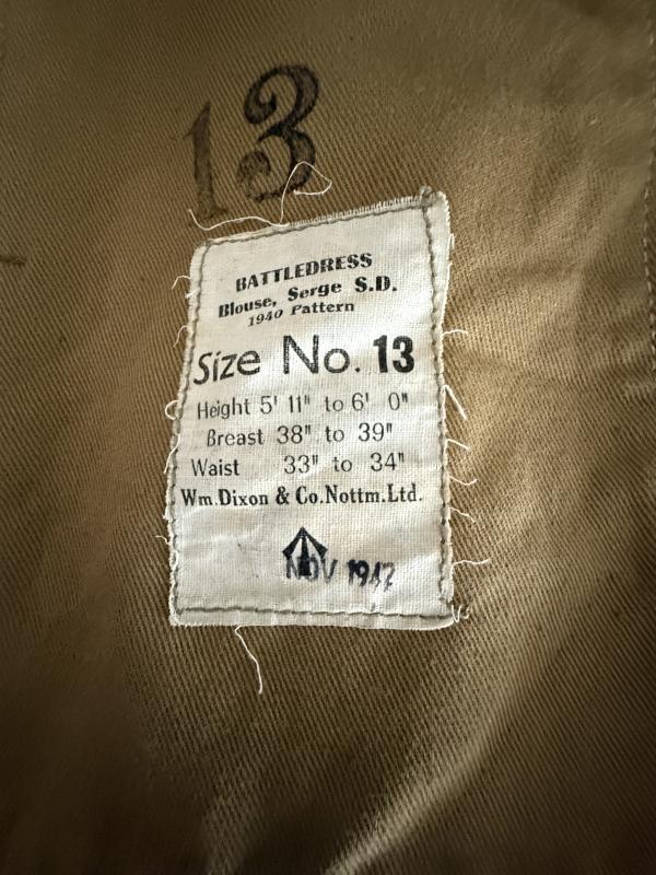 A stunning and example of a British (Airborne) Parachute Regiment Battle Dress Jacket. The jacket is applied with all original insignia. Compromising rare printed Parachute Regiment shouldertitles, Parachute qualification win, printed Pegasus formation patches and sergeant stripes. The blouse compromises a size 13 and 1942 dated example. Makers marked by Wm. Dixon & Co. Nottingham Ltd a lesser encountered maker. Parts of the War Department acceptance stamp are still visible in the liner of the blouse. The blouse is in excellent condition with no excessive wear or damage. A jacket that would have been worn by the 1st of 6th Airborne Division in for instance France, Holland and Germany. Would be very hard to upgrade.