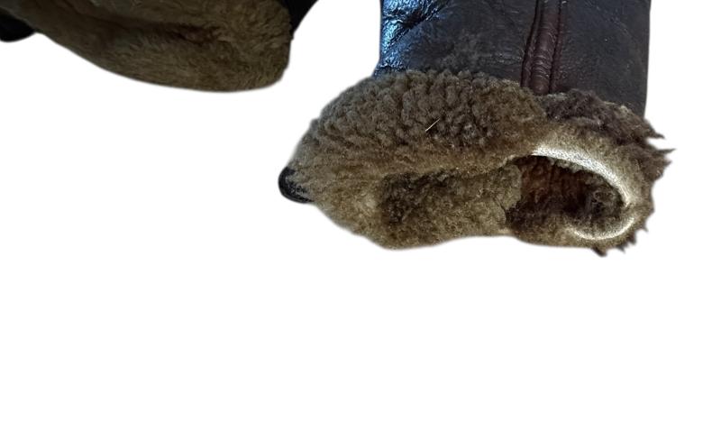 Executed in brown leather and sheepskin lining. The leather has some repairs however is in very smooth and excellent condition retaining a great patina!