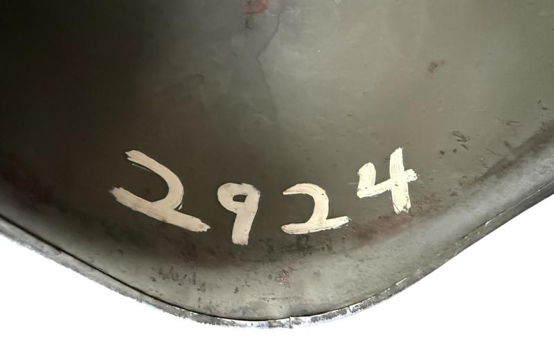 A textbook example of a front seam and fixed bale M1 helmet. The helmet is fitted with a so-called "Hawley" liner. This type of liners were produced by the Hawley Products Company and compromise the the first contract in 1941. The first contract was for 950.000 liners only. After this production was discontinued as the liners were not strong enough. The liner is in excellent condition with nice wear and age. Complete with leather sweatband and leather chinstrap. An attractive and nice used U.S. M1 Helmet Fitted With Hawley Liner.