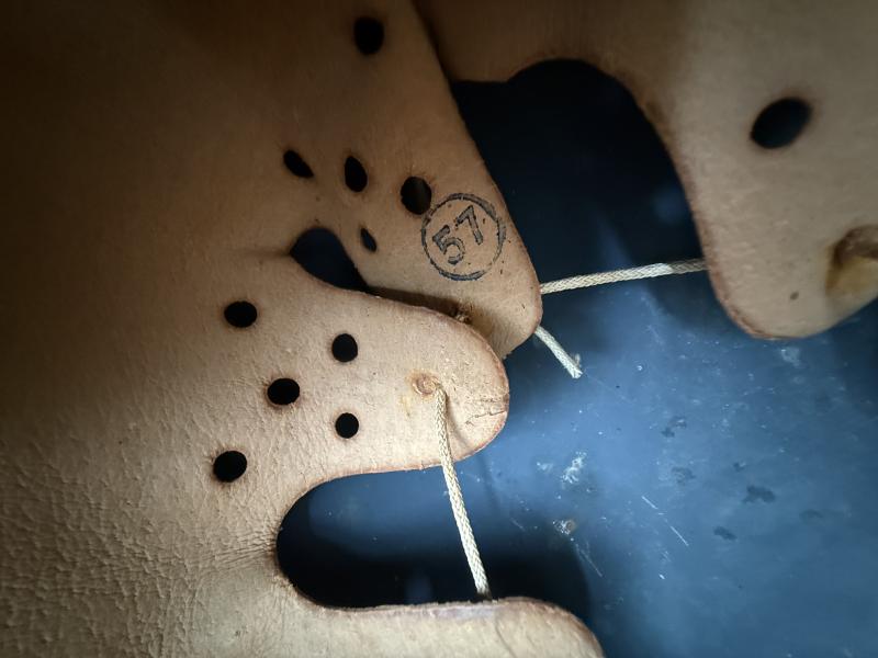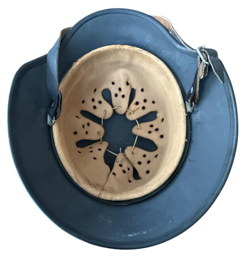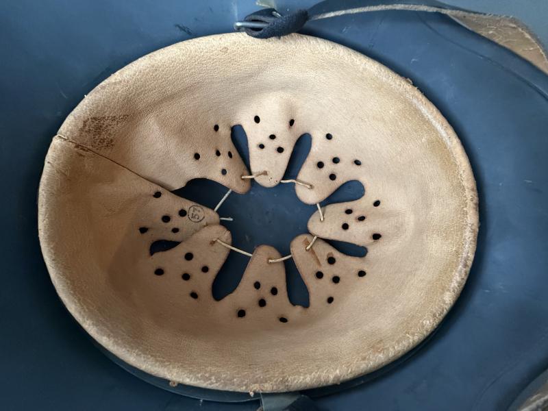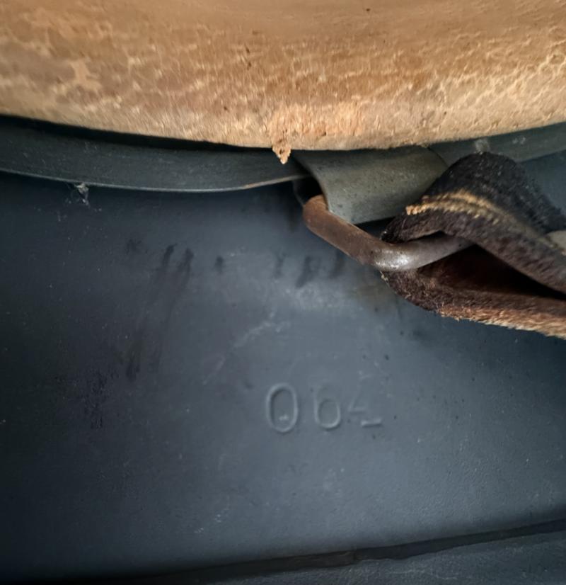In a mint and unussued condition a German Luftwaffe M40 Single Decal Combat helmet. The shell is marked with maker and size 'Q64" which indicates production by the company of "Quist Esslingen" and number 1486. The shell is size 64.and the liner.size 57, complete with The zinc made liner is original attached to the helmet and never taken out. The helmet comes with a orginal chinstrap with the makers marked G Schiele Loburg stamped on the strap The shell has a luftwaffe blue paint for 100 % visible and a very nice Luftwaffe 2nd model eagle Overall a very nice untoched helmet!
