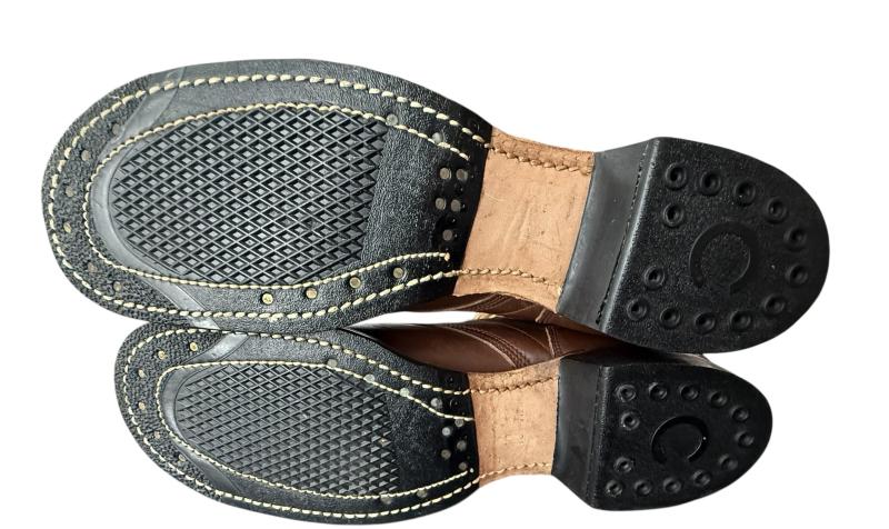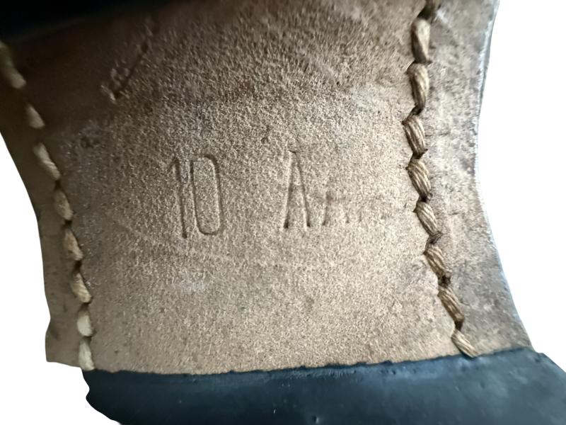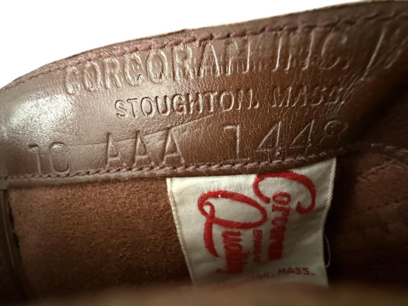 In mint and unussued condetion Corcoran Paratrooper jumpboots. Produced by one of the larger contractors for these iconic jump boots. This particular pair of boots is makers marked Corcoran. Both stamped "Corcoran Inc Stoughton Mass " in the leather liner of the boots. Fitted with original Corcoran Qualitity label The boots compromise a large size 10 AAA. and fitted with orginal leather laces