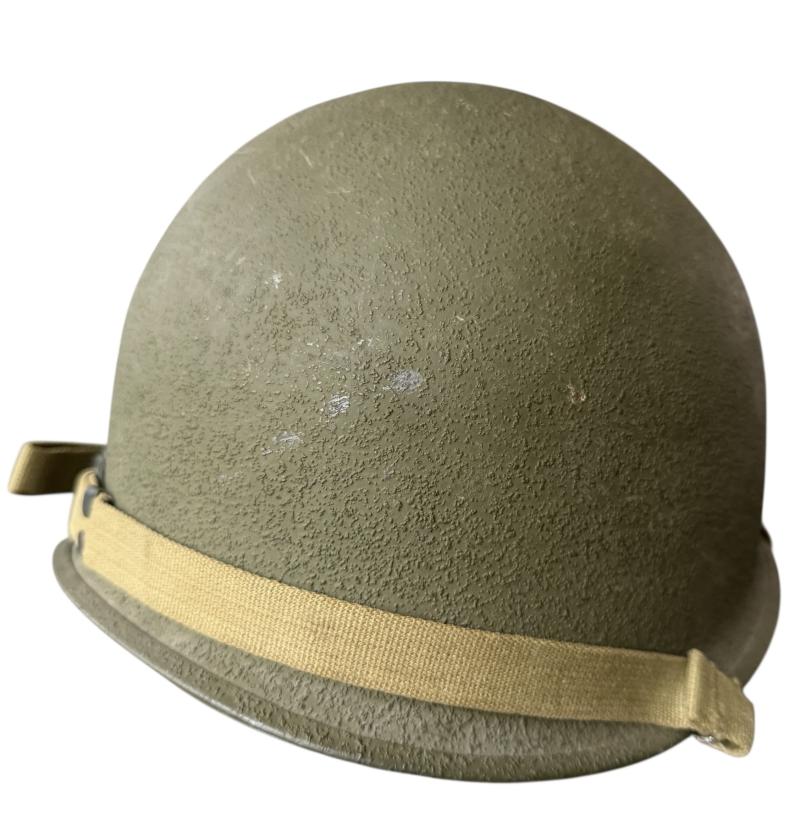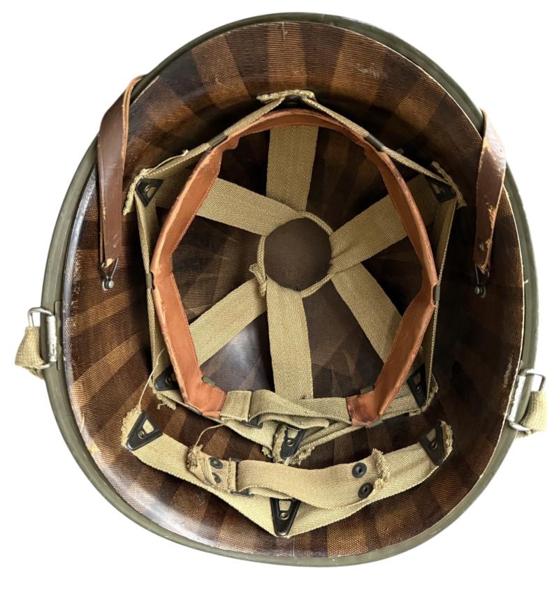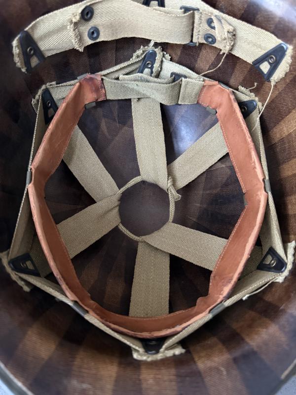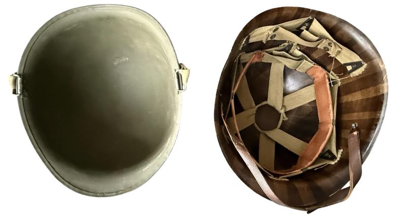 The helmet comes with M1 liner in equal good condition. Compromising a Firestone makers mark. A highly attractive U.S. M1 Swifle Bale Helmet And Firestone Liner that would be hard to upgrade.