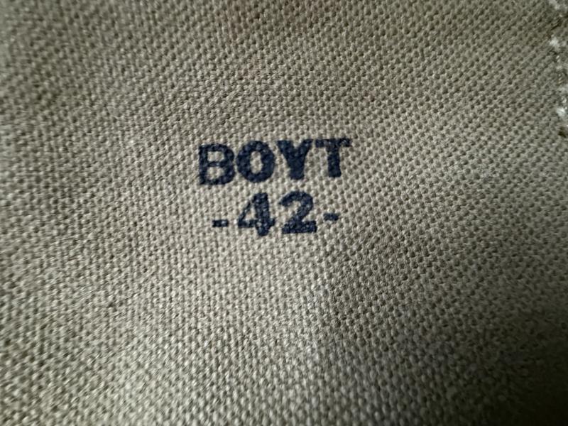 U.S. M1937 Browing Automatic Rifle (BAR) Cartridge Belt. The belt is in unissued condition. Clearly makers marked Boyt and 1942 dated. Cannot be upgraded.
