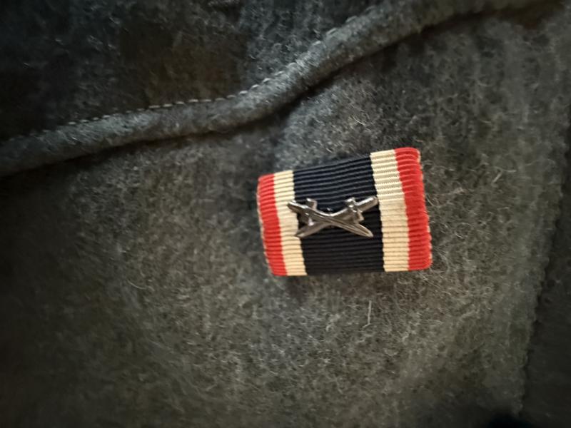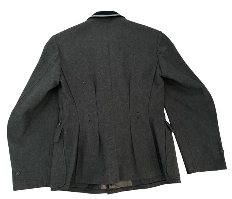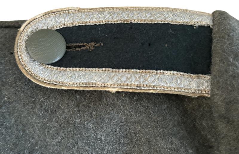 Wehrmacht (Heer) NCO's M36 Field Blouse (Feldbluse M36 ). The blouse is applied with original breast eagle and sewn-in shoulderboards;piped in the white 'Truppenfarbe' (branch-colour) for Infantry personnel. . And Ribbon Bar (Bandspange) for the War Merit Cross 2nd Class with Swords.