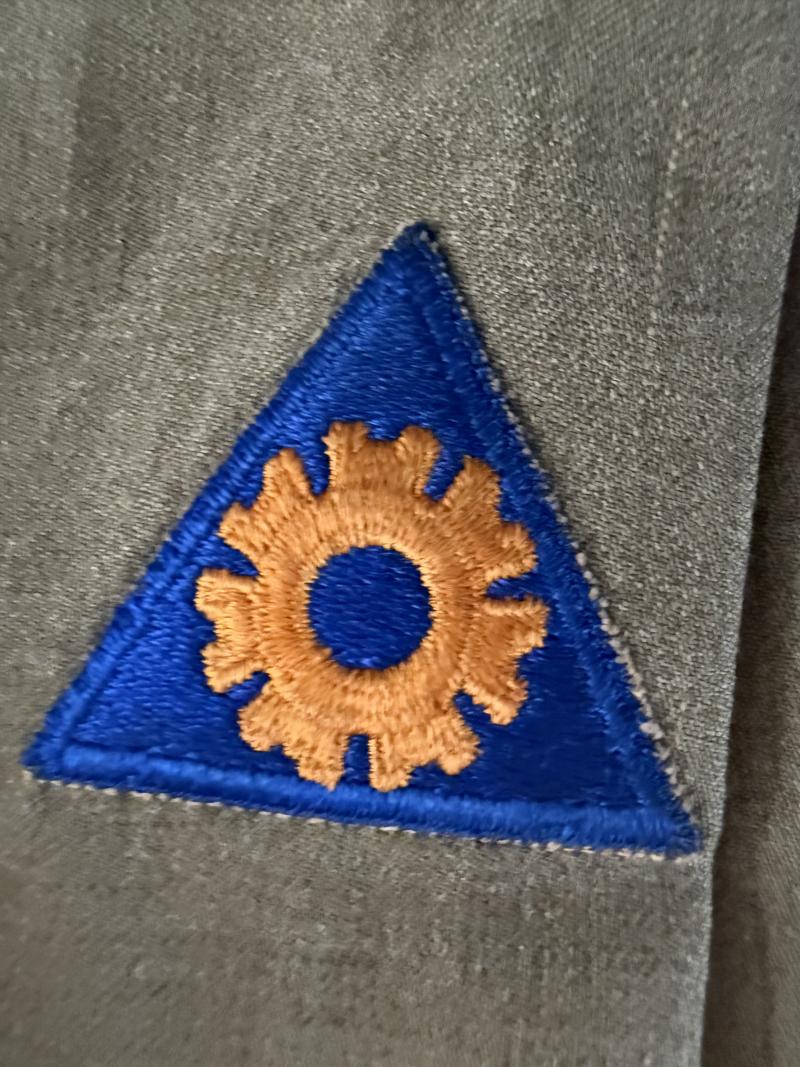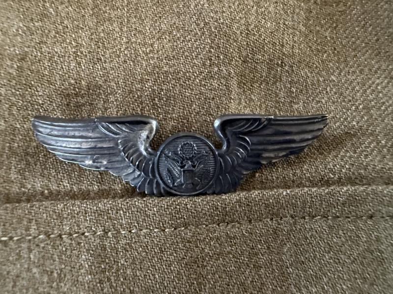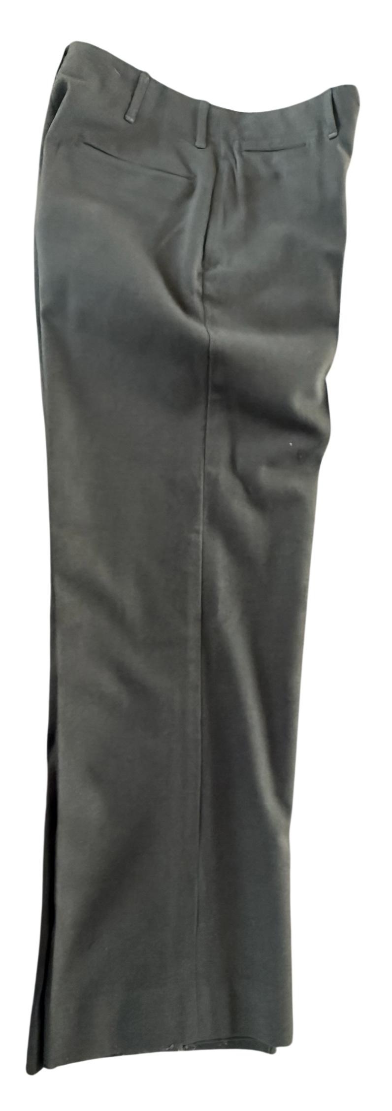 A rare and unusual item. This Enlisted mens flanel shirt is period taylored to the size and model of an IKE jacket. Fitted with Air Crew wing and U.S. Air Force formation patch. Laundry numbers being written in the interior of the shirt. Taylored to personal preference, possibly being stationed in a warm climate. With the shirt comes an original pair of trousers. The wool serge trousers are fitted with original yet washed out label. Sized waist 30 and inseam 31. A unique pair of taylored flanel shirt and wool serge trousers. Hard to be upgraded.