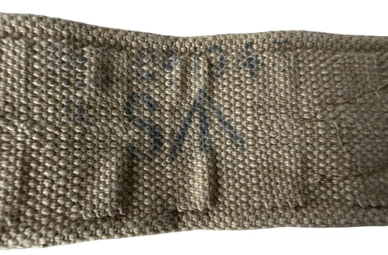 In imo mint condition this British 1937 Pattern Webbing Belt. Compromising the so-called economy pattern. The belt is clearly marked with the Broad Arrow and what appears a 1943 dated. Marked size S. Hard to be upgraded.