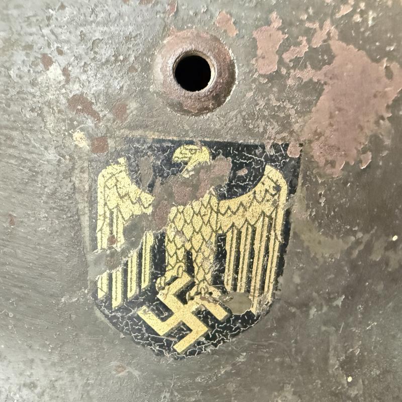 WH (HEER) M35 Single Decal Combat Helmet in nice used condition yet with a nice patina.