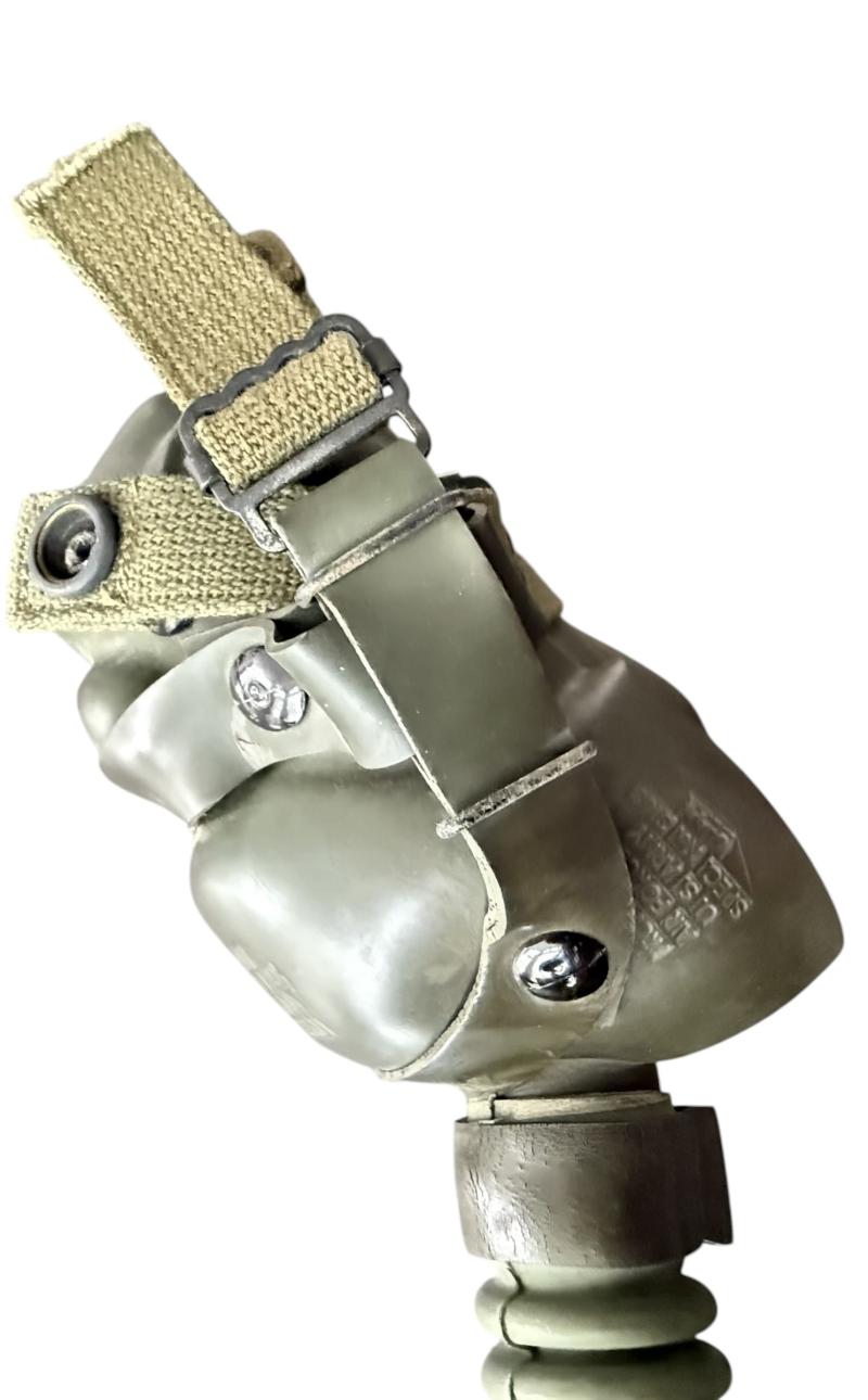 United States Army Air Force A-14 oxygen mask. This pattern of oxygen mask was introduced in 1943 and became the standard issue for fighter pilots and bomber crews until the end of the war. Makers markedOhio Chemical & Manufacturing company in August 1944. A nice i.e. light used example of an wartime dated USAAF A-14 Oxygen Mask.