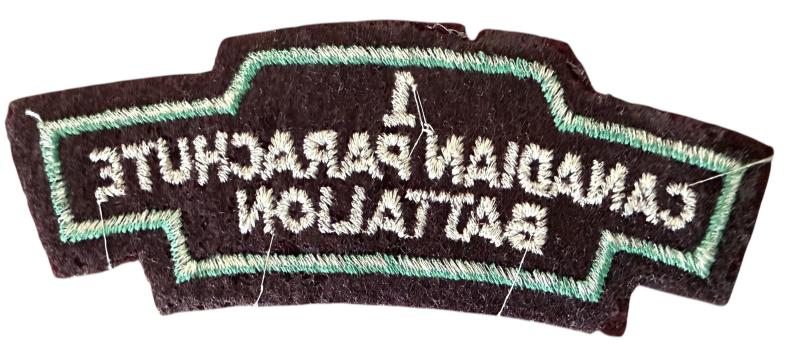 A nice unussued example of the first Canadian Parachute Battalion shoulder titles. Britsh made so-called glueback examples.